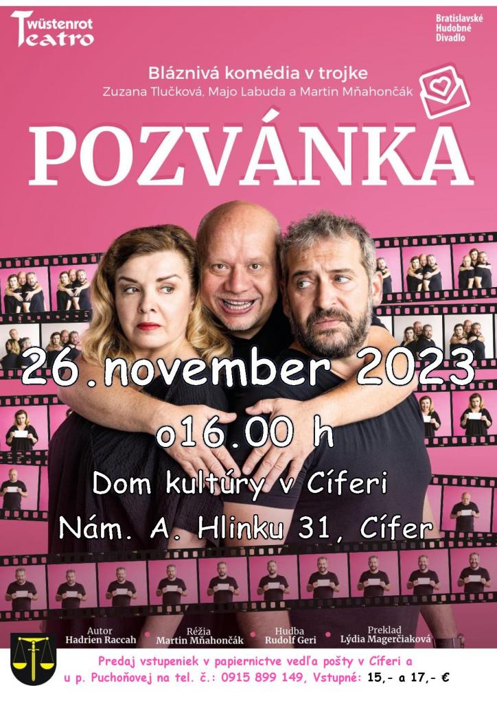 Aktuality - Cífer- divadelné predstavenie 26.11.2023 o 16.00 hodine