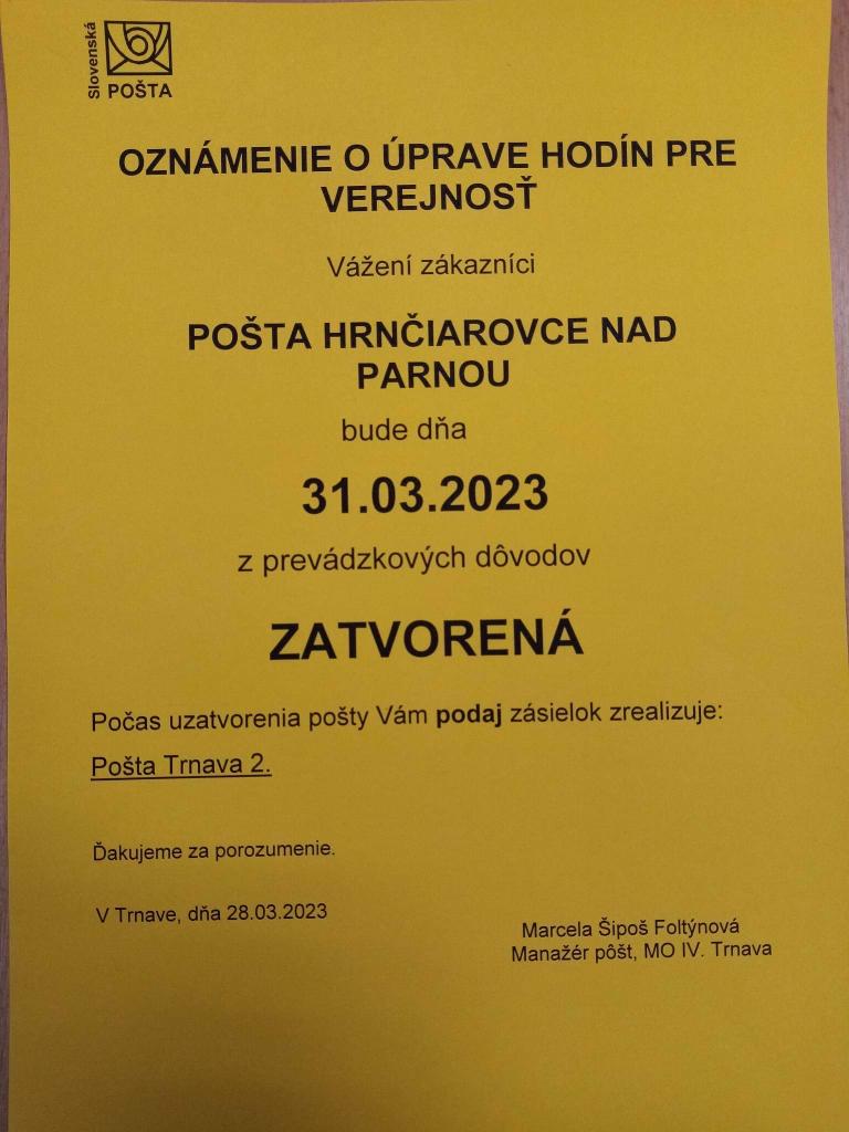 Pošta bude v piatok 31.3.2023 ZATVORENÁ 1