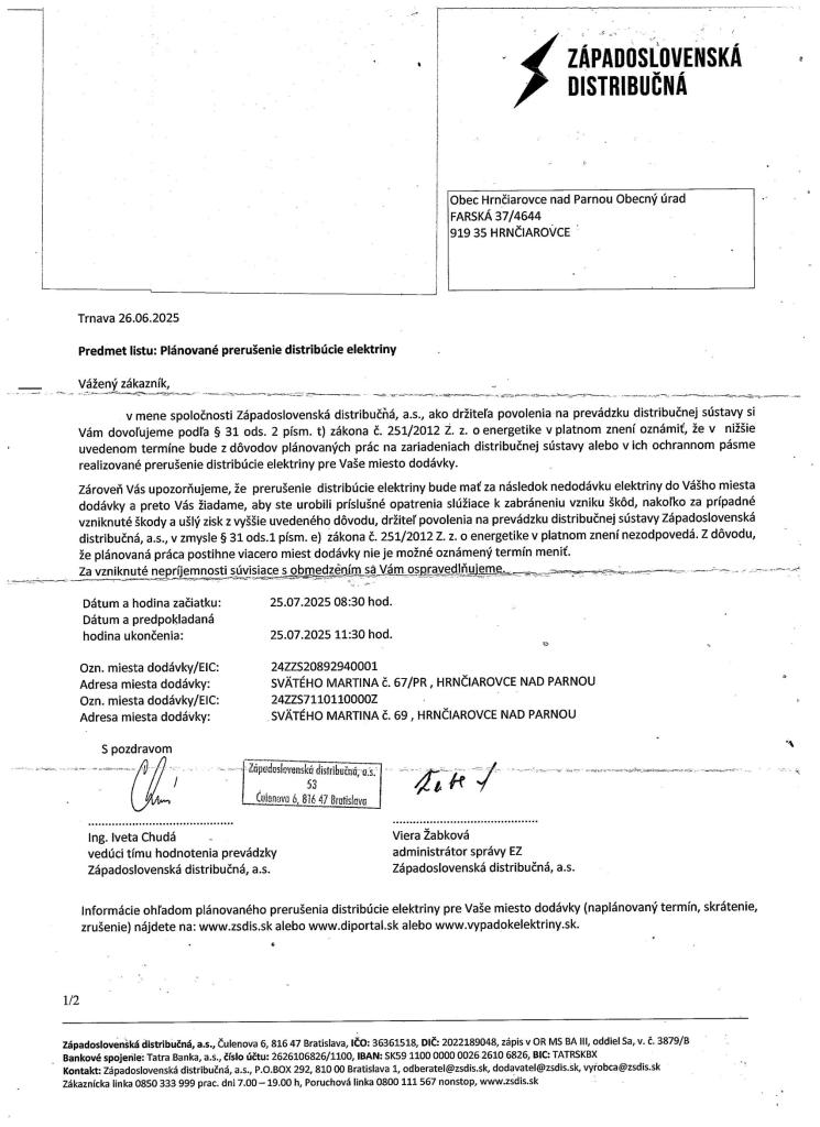 Odstávka elektrickej energie - Ulica Sv. Martina od 08:30 do 11:30