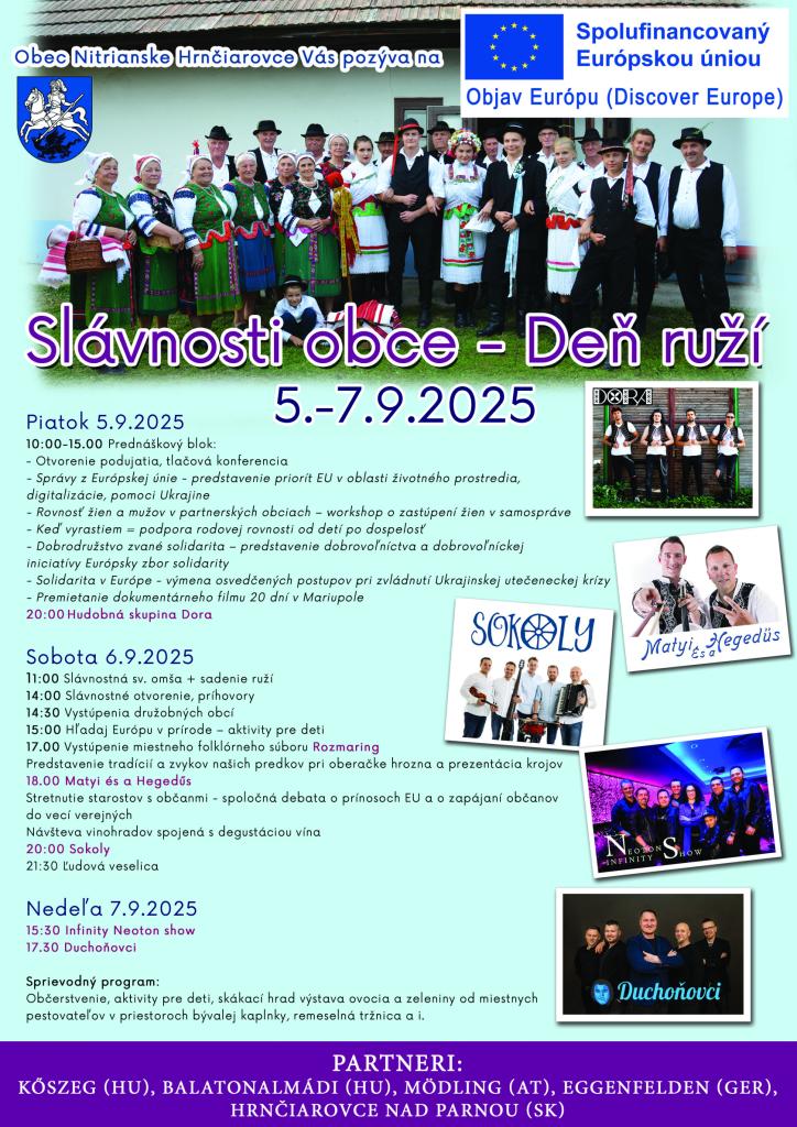 Obec Nitrianske Hrnčiarovce Vás srdečne pozýva na Slávnosti obce Deň ruží dňa 6. septembra 2025.