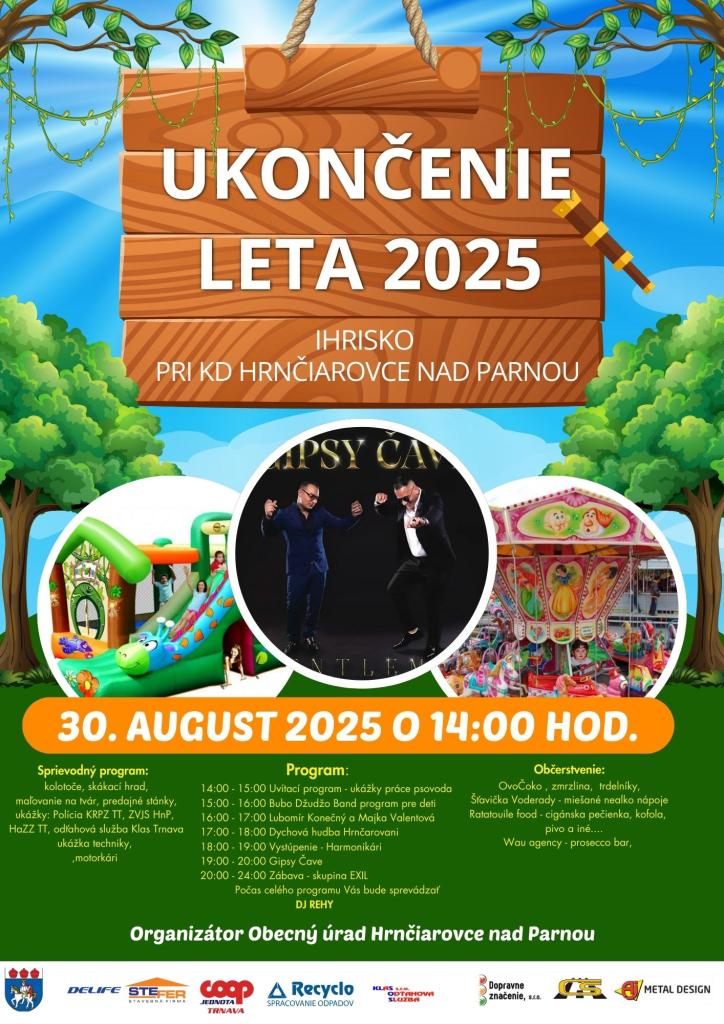 Vážení občania, srdečne Vás pozývame dňa 30.08.2025 ( sobota ) od 14:00 hod. na ukončenie leta 2025, ktoré sa bude konať v obci Hrnčiarovce nad Parnou pri KD. Čaká na Vás bohatý program, občerstvenie a zábava.