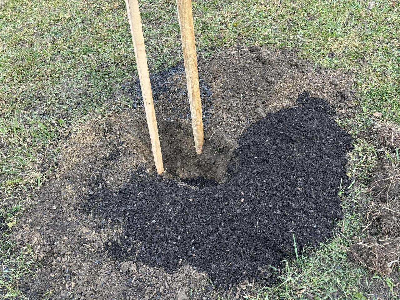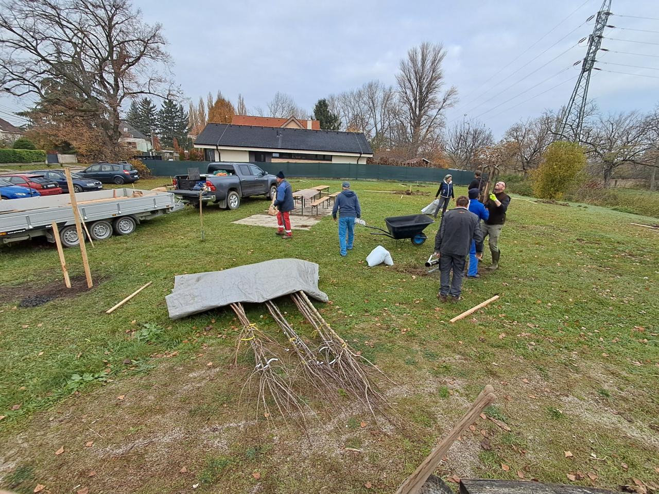 Výsadba ovocného sadu.