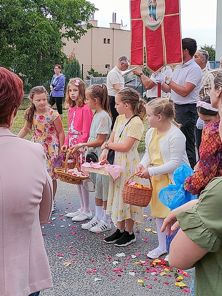 Pri príležitosti sviatku Božieho Tela bola konaná aj v našej farnosti slávnostná sv. omša a následne vykonaná procesia k postaveným stánkom - oltárom v areáli kostola.